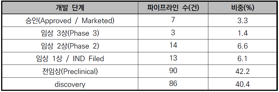 <표 1> 개발 단계에 따른 파이프라인 분포