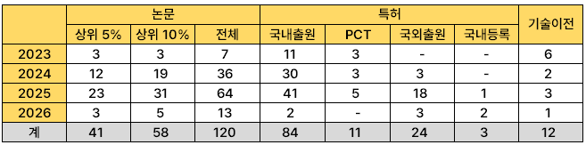 유전자편집제어복원기반기술개발사업 연구성과 누계 (26.04.28. 업데이트) 2026-04-28 GERC 0 12 13시간전 *2026. 04. 28. 기준 ※ 상위 10% 이내 논문 성과는 상위 5% 이내 성과 포함※ 국내특허는 PCT 특허 포함